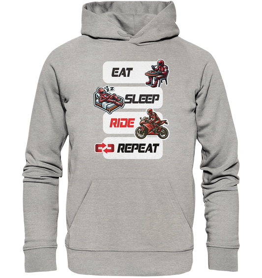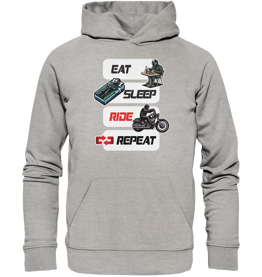 Eat Sleep Ride Repeat - lustiger Biker Spruch - Organic Hoodie